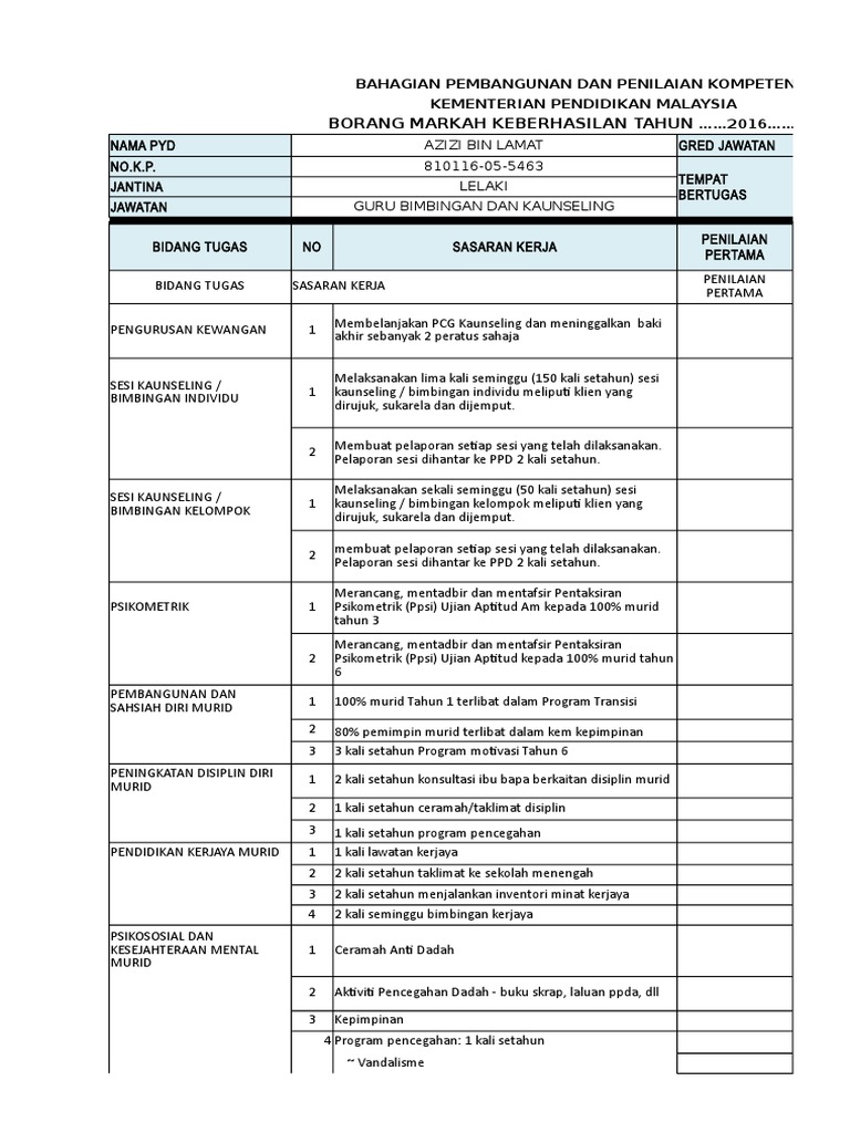 Contoh Borang Keberhasilan Guru Penolong Akademik Biasa Terkini guru dan pegawai perkhidmatan pendidikan perlu menyediakan borang keberhasilan pada setiap tahun di mana borang ini perlu disediakan di awal tahun persekolahan. Contoh pengiraan skor julat keberhasilan pbppp guru pdp bil maklumat dalam borang markah keberhasilan maklumat dalam dokumen rujukan penilaian akhir tahun aspek deskripsi penetapan sasaran awal pencapaian pertengahan sasaran akhir pencapaian sebenar 1 pdp peningkatan pemahaman dan kemahiran murid sasaran 30 daripada 40 orang murid. Contoh pengisian borang keberhasilan 2019 from onlinefliphtml5 see tweets about keberhasilan on twitter.